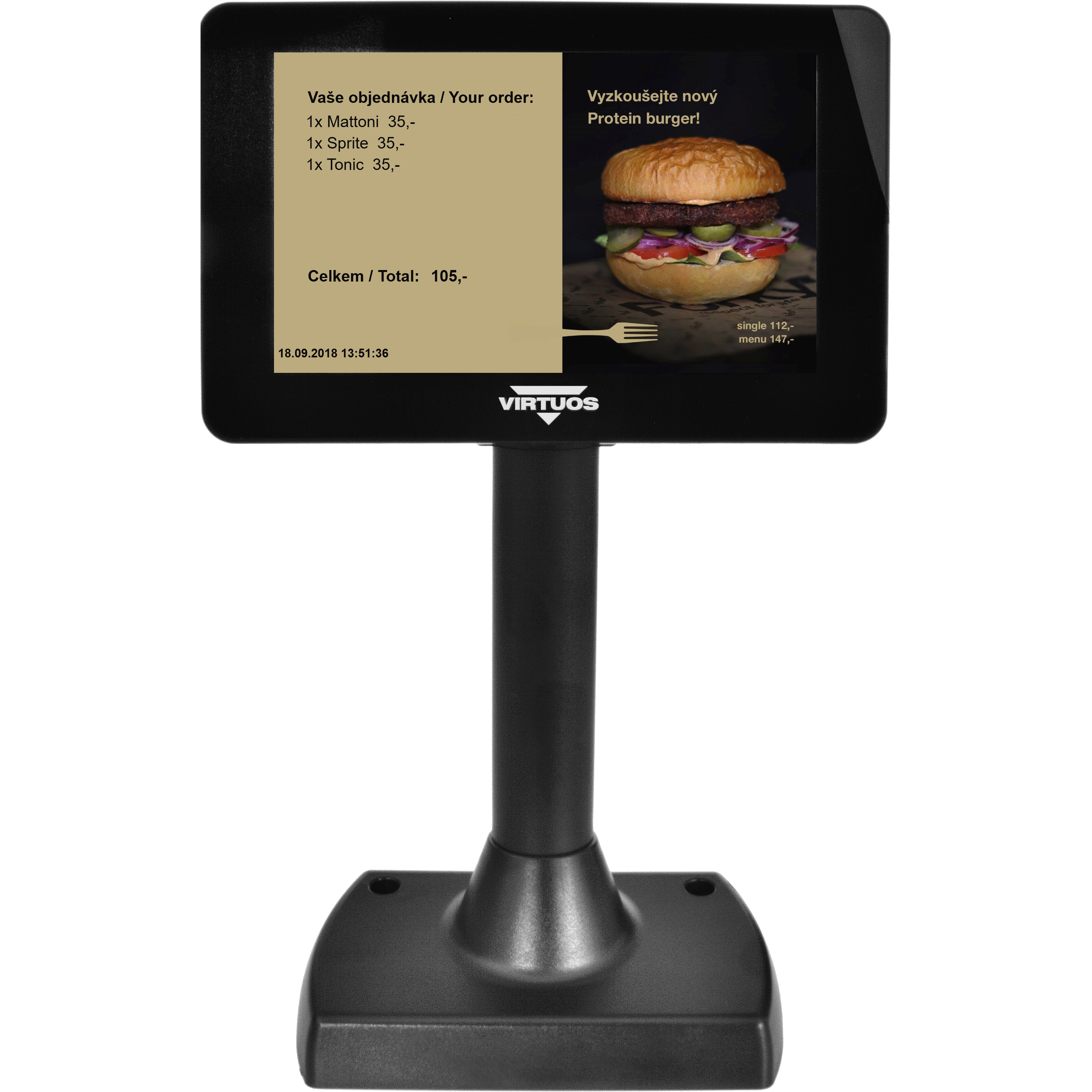 Upozorněte zákazníky na nové produkty a cenové akce prostřednictvím barevného zákaznického displeje s vysokým rozlišením!