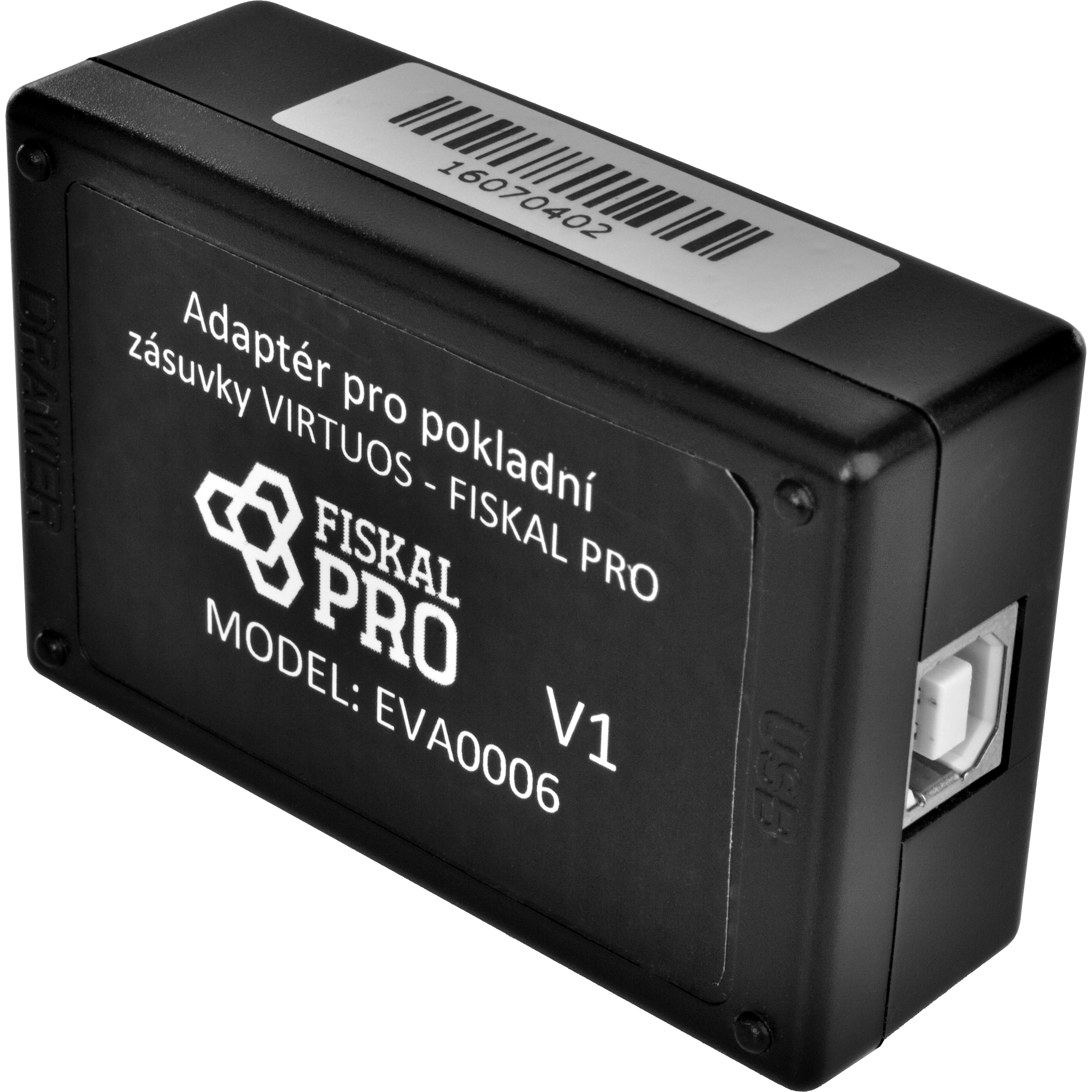 Adaptér pro připojení pokladních zásuvek Virtuos k terminálu FiskalPro VX520. Umožňuje zásuvku nejen otvírat, ale i zjišťovat její stav. K napájení využívá RS-232 port připojeného terminálu.