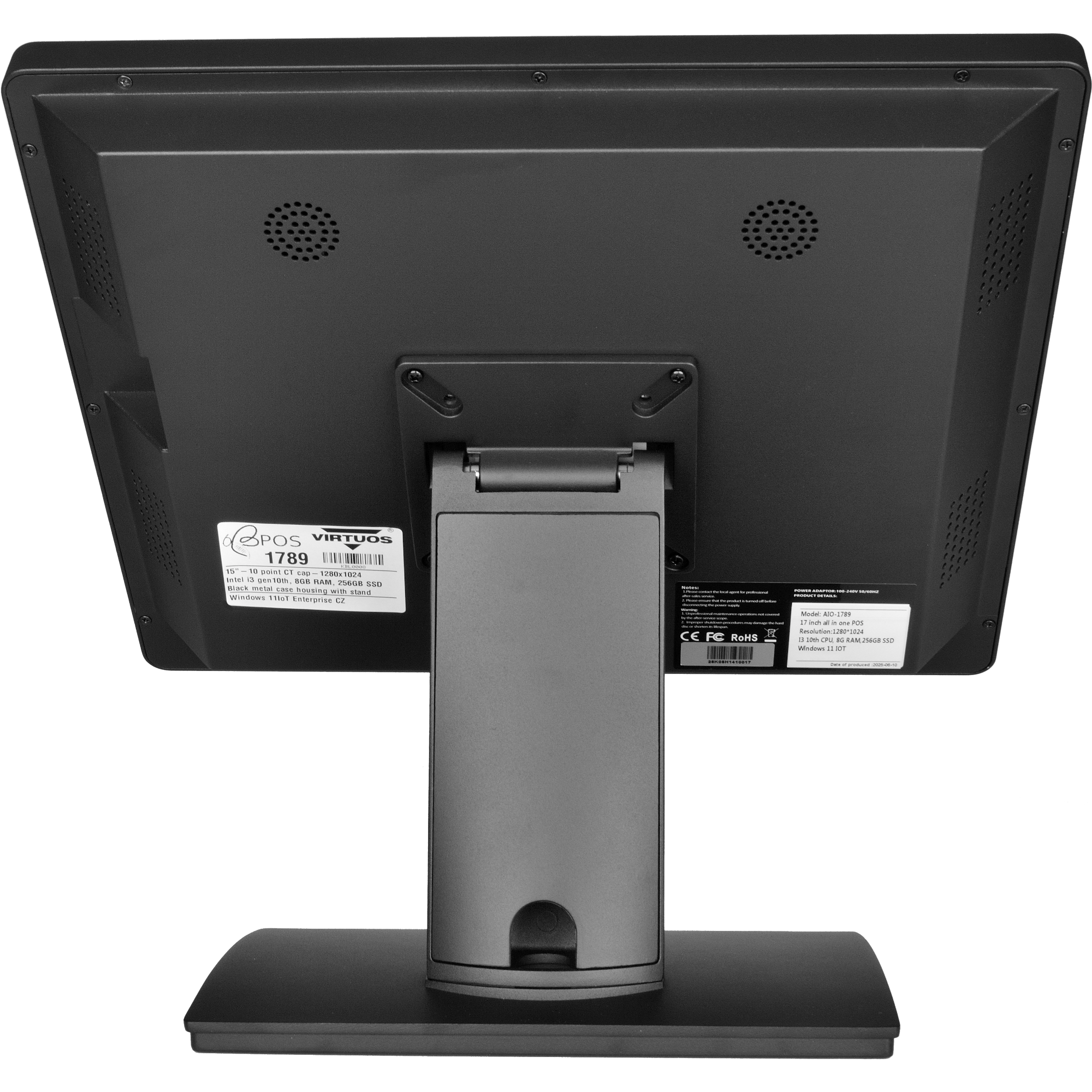 BPOS BP-1789 je cenově dostupný, výkonný a kompaktní systém. Pyšní se moderním vzhledem, celokovovou konstrukcí v elegantní černé barvě a bezrámečkovým kapacitním displejem s polykarbonátovým sklem. Systém je dodáván včetně SSD pevného disku 256 GB a předinstalovaných Windows 11 IoT.