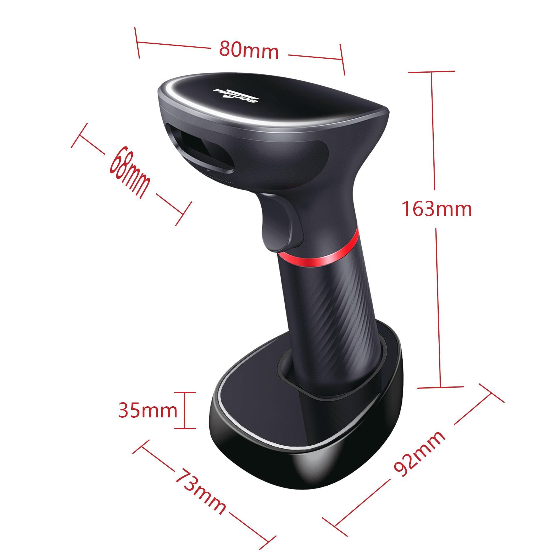 CCD 2D čtečka Virtuos HW-855A, bezdrátová, základna, USB, černá
