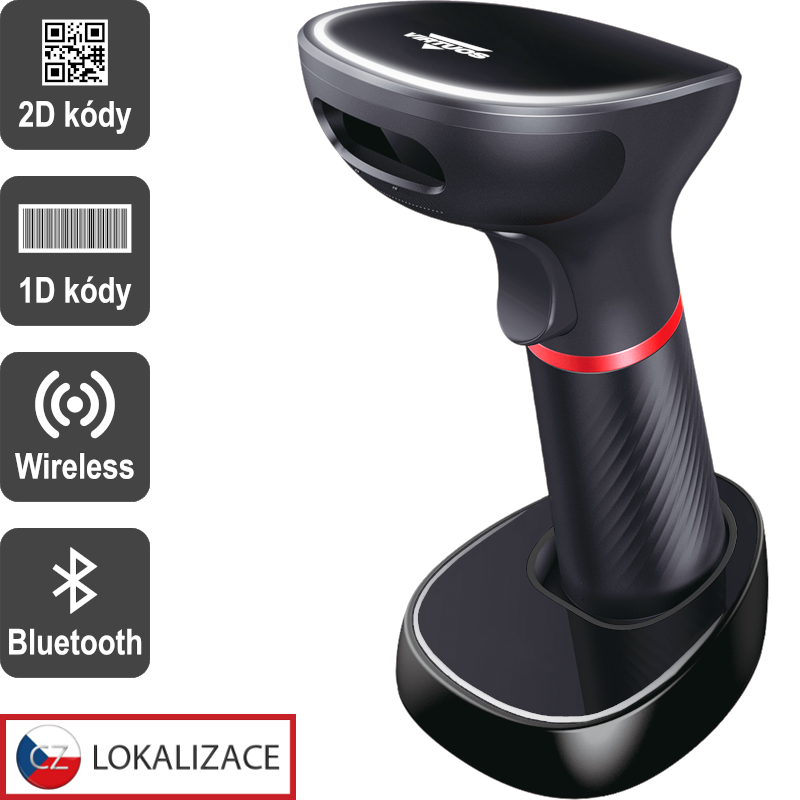 Bezdrátový CCD 2D ruční snímač 1D a 2D čárových kódů. Jedná se o ideální čtečku QR kódů a eReceptů (elektronické recepty). Čtečka umí číst čárové kódy z různých povrchů, a to např. i z průhledných obalů nebo displejů, rychle dekóduje i obtížně čitelné, rozmazané a pomačkané kódy. Komunikaci bezdrátové čtečky s připojovaným zařízením lze snadno zajistit díky nabíjecí základně, která se jednoduše připojí k portu USB. Čtečka umožňuje emulovat klávesnici i sériový port.