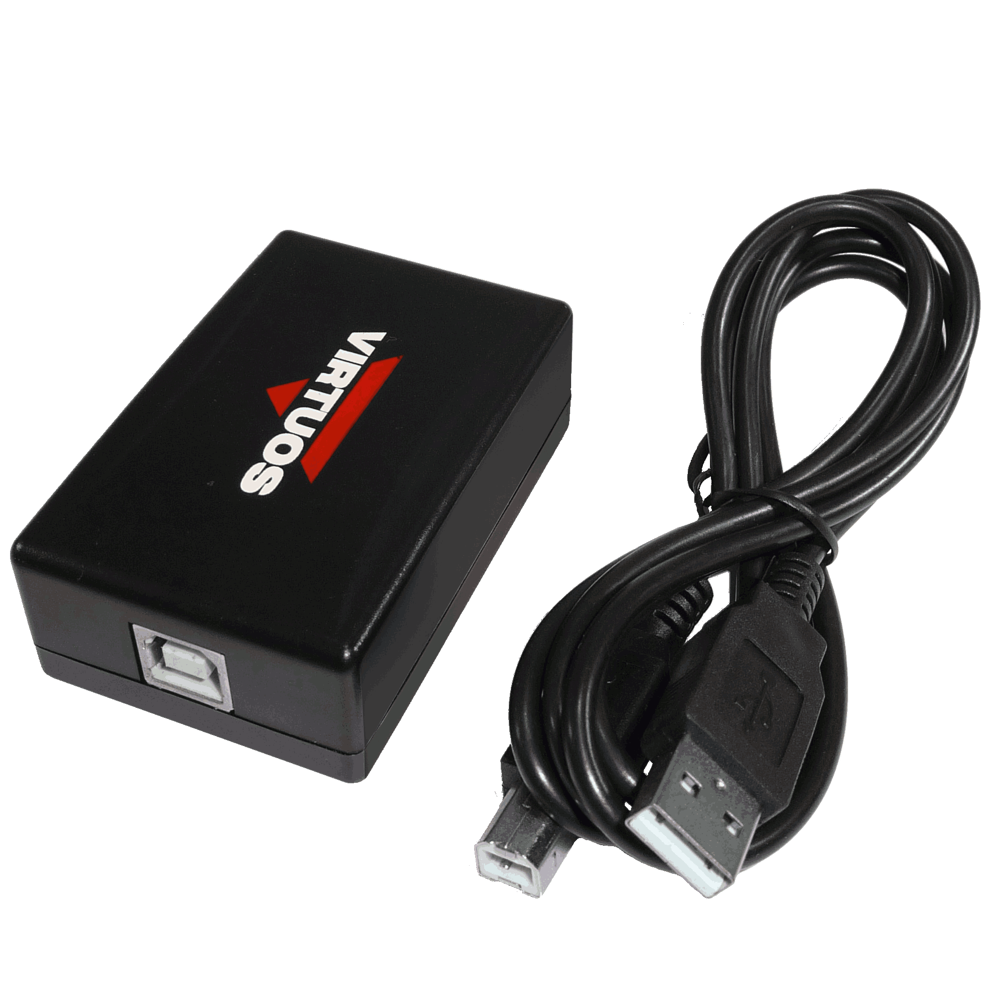 USB adaptér Virtuos® pro připojení 24V pokladní zásuvky k POS systému, počítači nebo notebooku prostřednictvím USB konektoru, který nevyžaduje další externí napájení. Umožňuje zásuvku nejen otvírat, ale i zjišťovat její stav. Díky použité čipové sadě Profilic není v nových verzích OS Windows třeba dodávat ovladač. Dále navíc podporuje vedle Windows i Linux a operační systém tabletů Android 4.2 a vyšší.